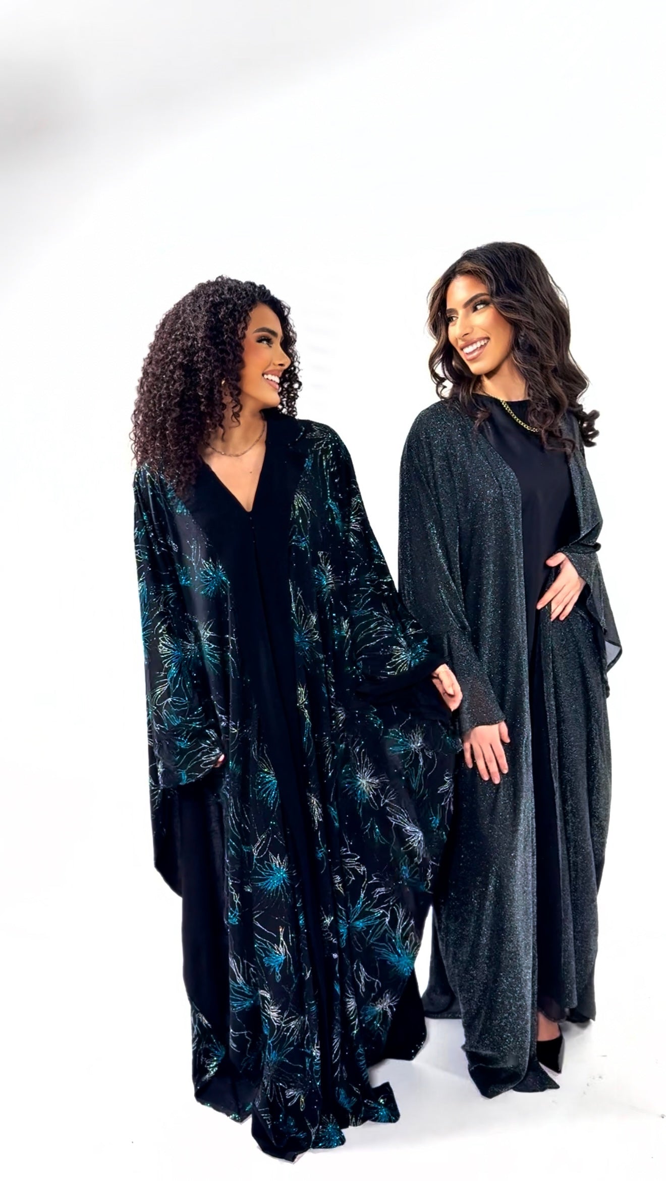 Plongez dans l’élégance avec notre abaya ouverte, une pièce unique conçue à la main dans notre atelier à Paris. Son tissu noir profond est sublimé par des broderies scintillantes aux reflets argentés et bleutés, rappelant un ciel illuminé de mille étoiles.